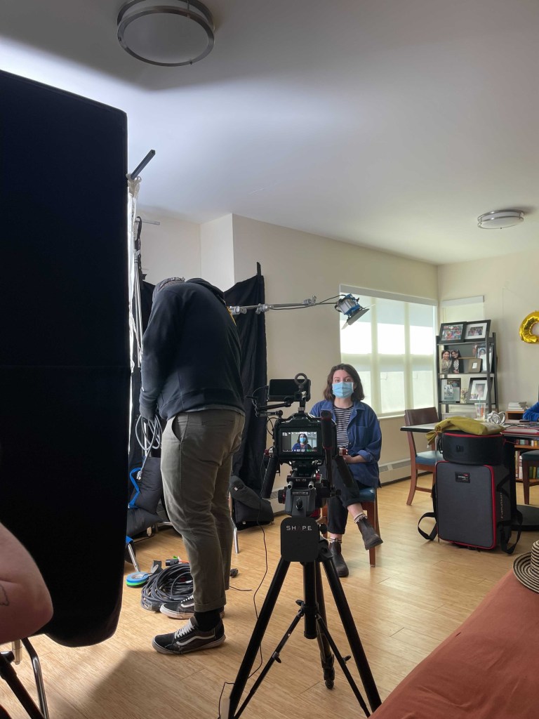 The video team was very excited to help get me involved—here I am on set conducting the interview with Miriam, the first video on the landing page.